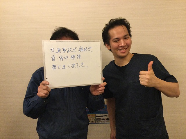 交通事故で痛めた首・背中・腰等、楽になりました。